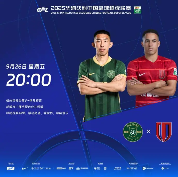 虎扑09月26日讯 今天20:00,浙江即将在主场迎战成都蓉城,赛前双方公布首发名单。